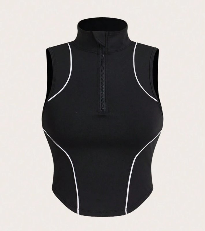 Hálfrenndur svartur sport toppur