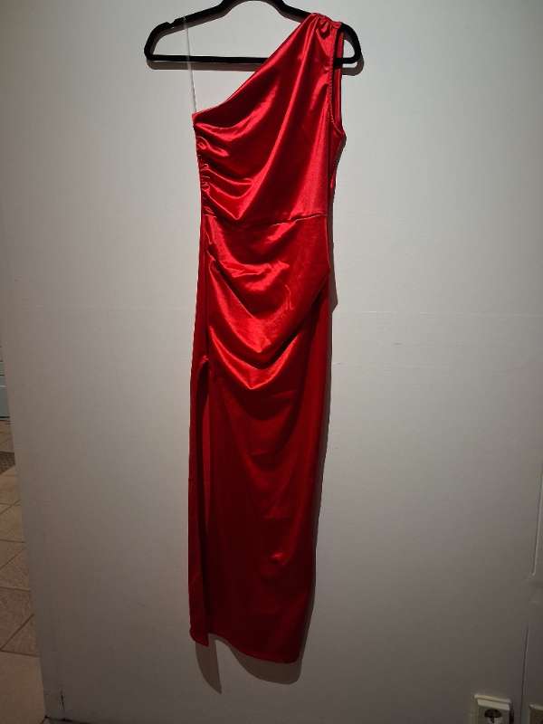 Uptown Rauður satínkjóll með klauf